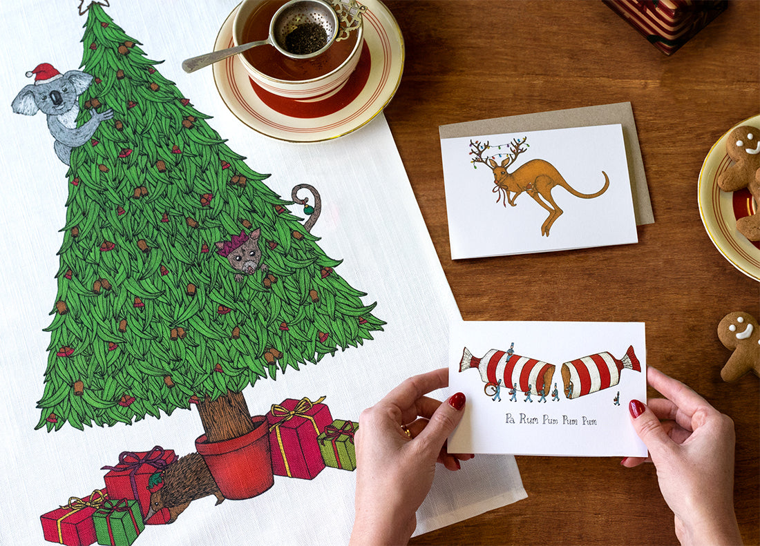 Melbourne artist Emily May imagines her quirky Australian birthday cards from a whimsical world where her alter ego The Nonsense Maker was born. Highly detailed, playful and always wonderful, her handmade greeting cards are a unique reflection of her Melbourne childhood.